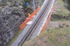 Nachdem die Perrons grösstenteils bereits umgebaut sind, wird derzeit am Bahnhof Lax während der Totalsperre der MGB die Personenunterführung erstellt. Das anspruchsvolle daran ist, dass die gesamten Arbeiten innert 3 Wochen abgeschlossen sein müssen. Die Rampen für die Unterführung wurden bereits im Sommer errichtet, nun wird der Teil der Unterführung erstellt, der sich unterhalb der Gleise befindet. Dafür werden vorfabrizierte Betonelemente verwendet und eingesetzt. Danach wird der Schotter aufgetragen und die neue Fahrbahn wiederum einsatzbereit gemacht, sodass die Züge am 15. November wieder durch den umgebauten Bahnhof rollen können.