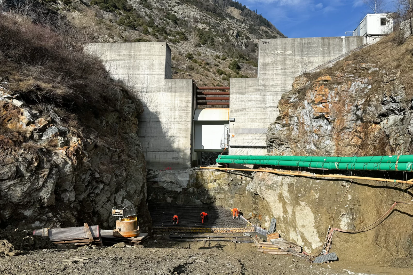Die Bauarbeiten umfassen die Erstellung des Kolkschutzes vor der Sperre Schlüüchu. Für die Arbeiten im Gerinne wurde ein Sicherheitskonzept erstellt, welches ein Sicherheitsdispositiv für Naturgefahren für die Bauphase enthält und zwingend einzuhalten war.