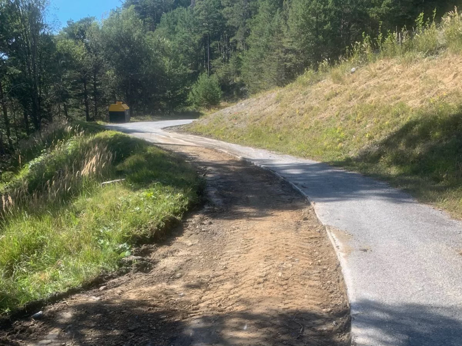 - Die Materialbewirtschaftung erfolgt innerhalb der Linienbaustelle. Der bestehende Belag wird zur Verstärkung der Fundationsschicht Gebrochen und Eingefräst, sowie das Aushubmaterial auf dem Strassenkörper zum Mitmischen aufgebracht.