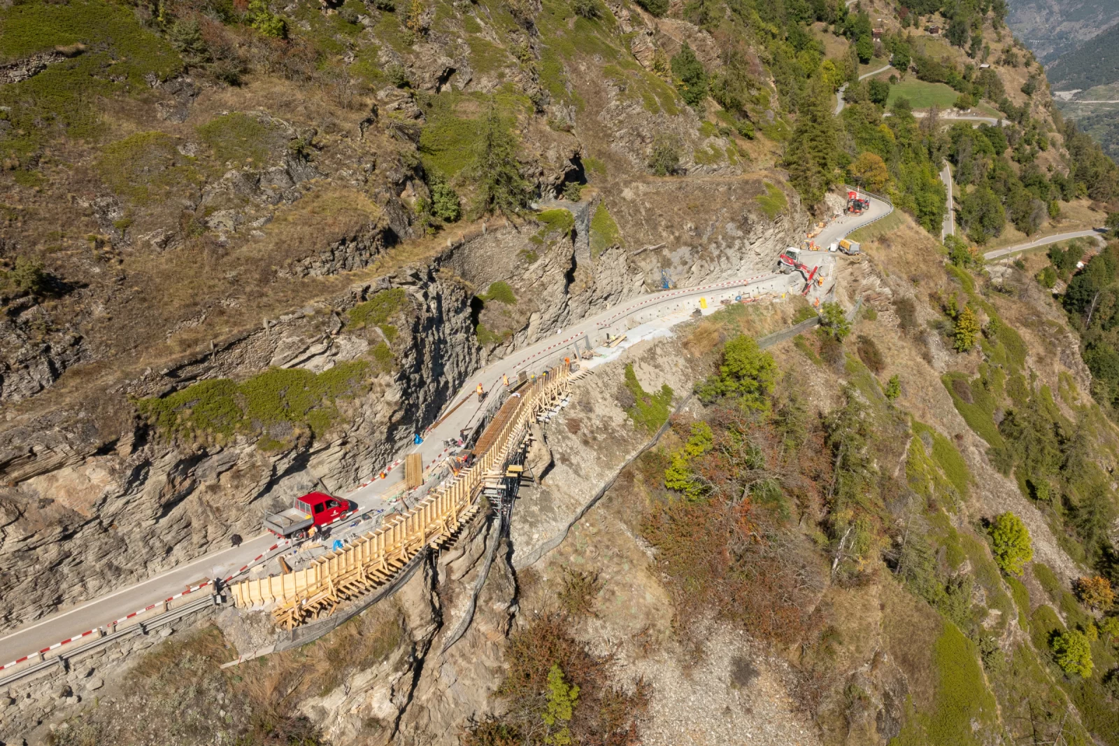 Der betreffende Straßenabschnitt befindet sich auf dem Gemeindegebiet von Törbel entlang der Straße von Stalden nach Törbel im Gebiet Flie. Die Linienführung in diesem Abschnitt wird optimiert und die Straße verbreitert. Zur Sicherung der Straße ist talseitig eine Lehnenkonstruktion erforderlich.
