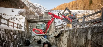 When paths end and the terrain becomes impassable, it really comes into its own. Thanks to its four mobile legs, it climbs up embankments and works safely in swamps or in the middle of a stream bed, as here in Münster in Goms.
