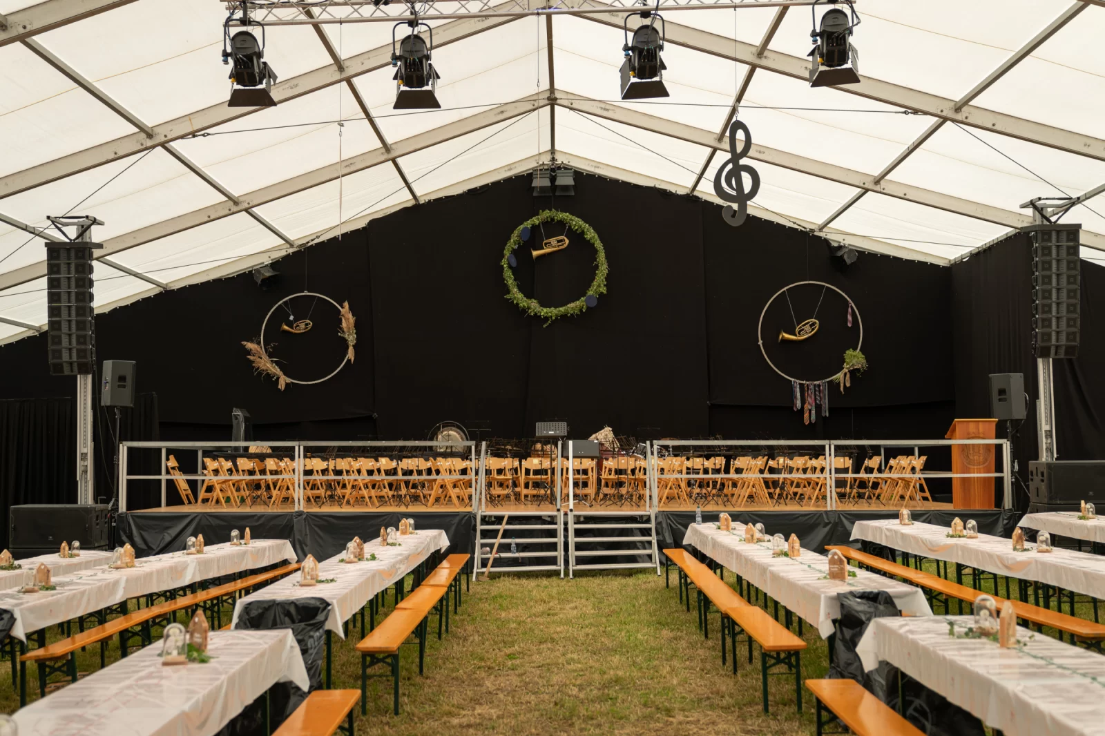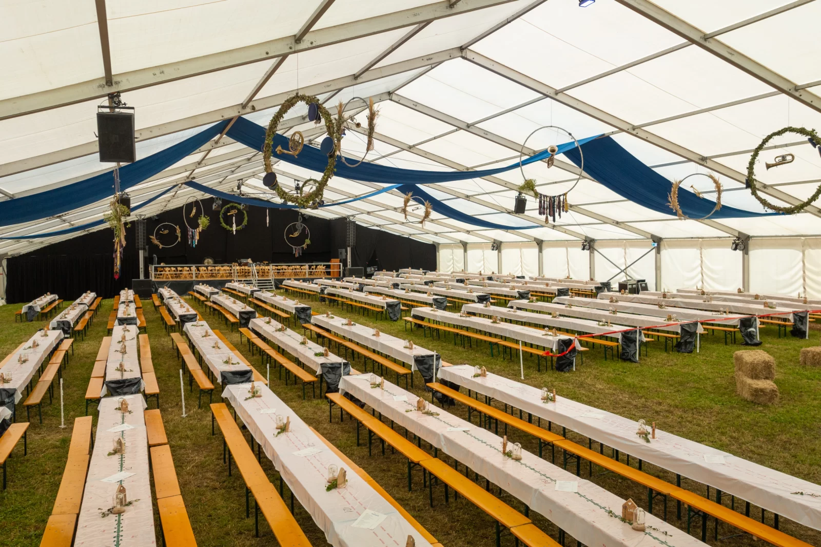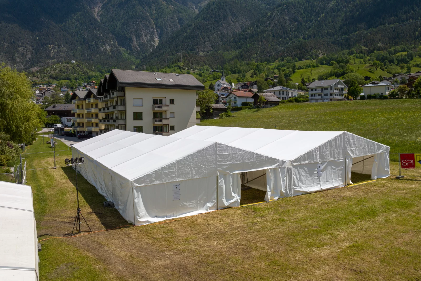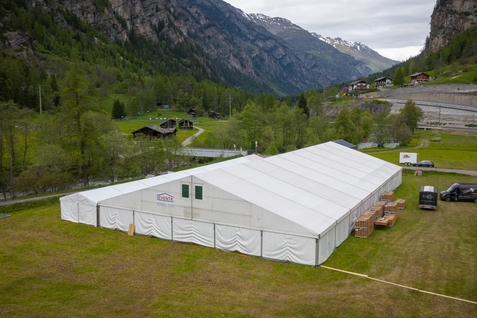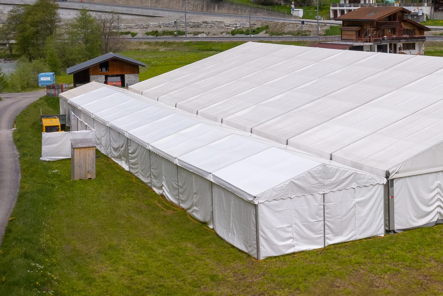 Le grandi tensostrutture sono la soluzione ideale per ospitare eventi di grandi dimensioni come festival di musica, ginnastica o lotta. Grazie alle loro dimensioni flessibili e alla struttura robusta, offrono spazio sufficiente per un gran numero di ospiti. Le grandi tensostrutture per festival sono ancorate al suolo con picchetti.