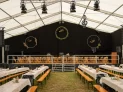 I tavoli vengono noleggiati senza sedie; su richiesta, le sedie possono essere noleggiate da un'azienda partner.