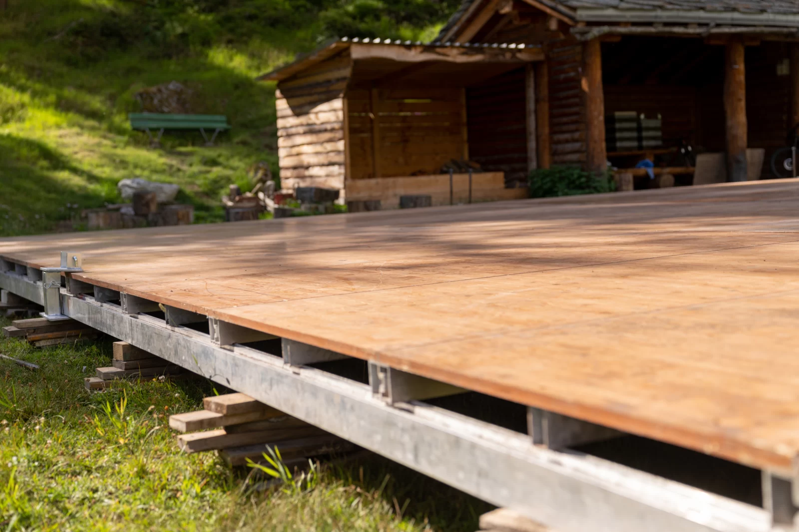 I pavimenti in gomma offrono una superficie resistente e antiscivolo, ideale per eventi e aree ad alto traffico. I pavimenti in legno aggiungono un tocco elegante e caldo agli eventi, fornendo una base stabile e un'estetica naturale.